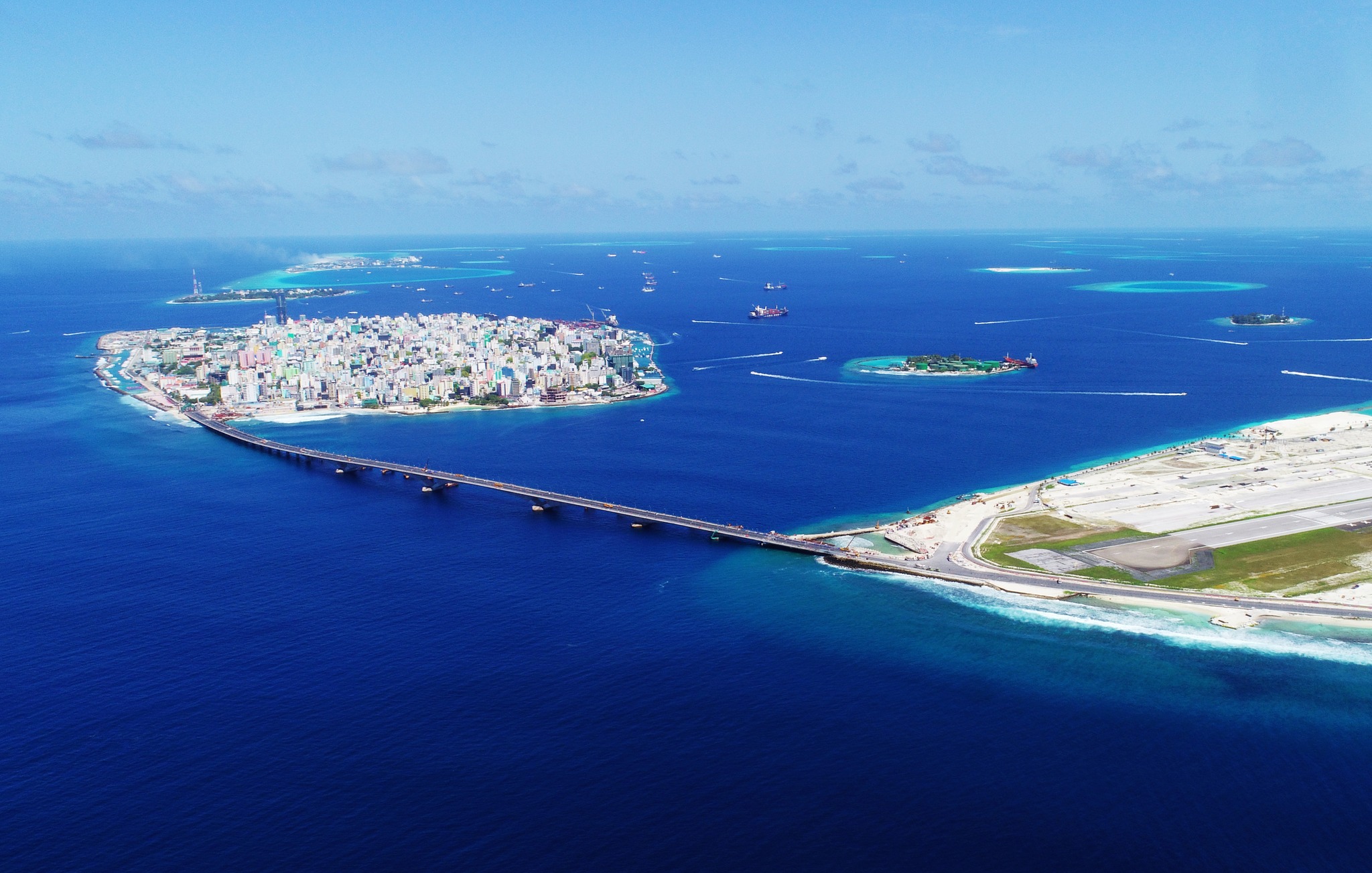 大桥建成竣事了马尔代夫没有跨海大桥的历史,,,,,,,开创了天下深远海珊瑚礁地质上建设特大型跨海大桥的先河。。。。。。。。大桥极大改善外地住民出行情形,,,,,,,有力增进马尔代夫经济社会生长。。。。。。。。